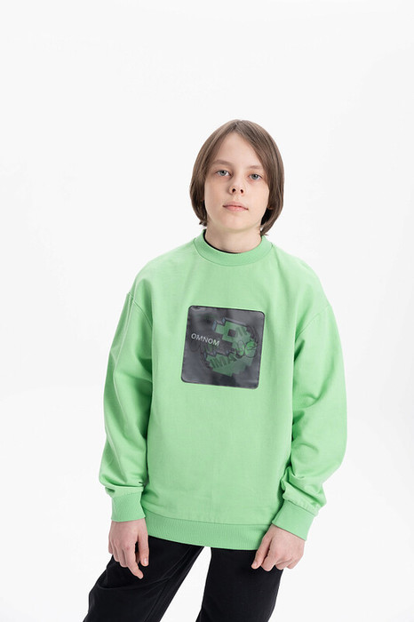 Свитшот без начеса из материала футер-петля. Манжеты и низ изделия из рибаны. По переду трендовая голографическая нашивка с принтом Pac-man (пакмен). В составе ткани преобладает высококачественый хлопок — спортивная кофта приятна на ощупь и прекрасно пропускает воздух. Тонкую весеннюю кофту можно носить круглый год. Подходит для любителей корейской и японской моды, стиля аниме. Широкая размерная сетка подойдет как для малыша так и для подростка.