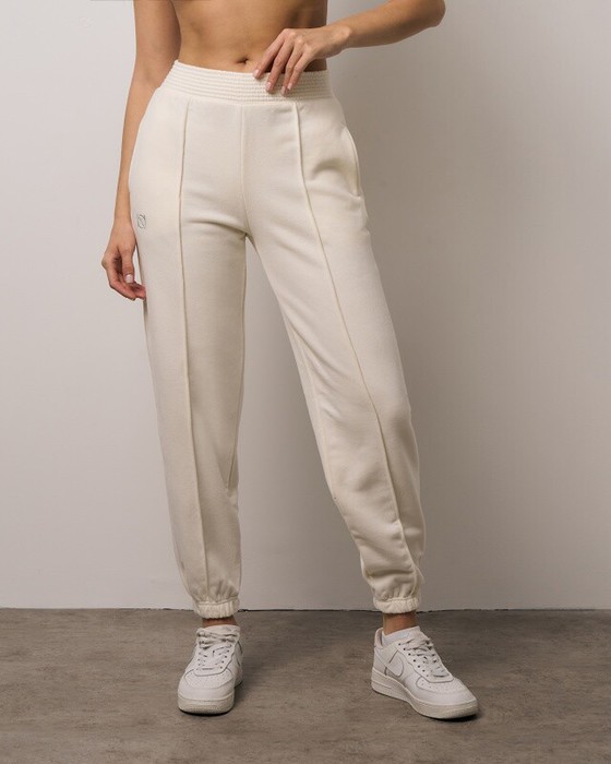 Свободные брюки BLOOMERS по передним деталям с застроченной стрелкой, высокая талия, карманы в шве, зауженные к низу,низ на резинке. Пояс из основной ткани,отстрочен