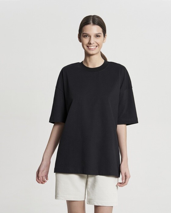 Футболка свободного силуэта. Горловина из рибаны.