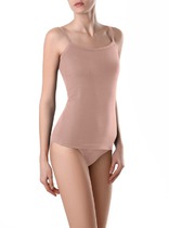 Майка спортивная, отрезная под грудью. По деталям полочки и спинки рельефные швы. Лиф полочки двойной. Горловина и проймы окантованы.