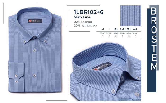 Совместные покупки Курган Мужская одежда Рубашки — 1LBR102+6* Сорочка мужск.полу.притал. дл. рукав, BROSTEM, шт