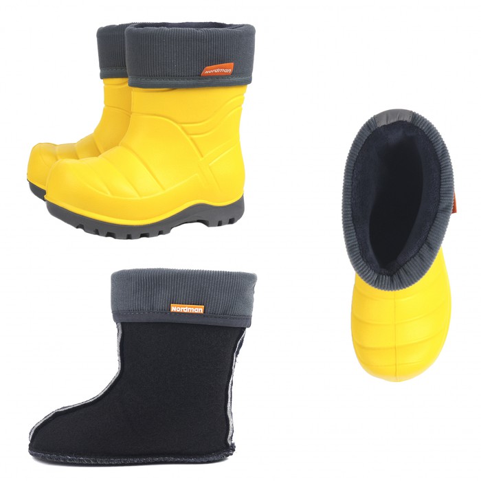 Детские сапоги из ЭВА Nordman Flash не пропускают влагу, очень легкие и теплые. Флисовый утеплитель легко вынимается. Его можно сушить и стирать.
