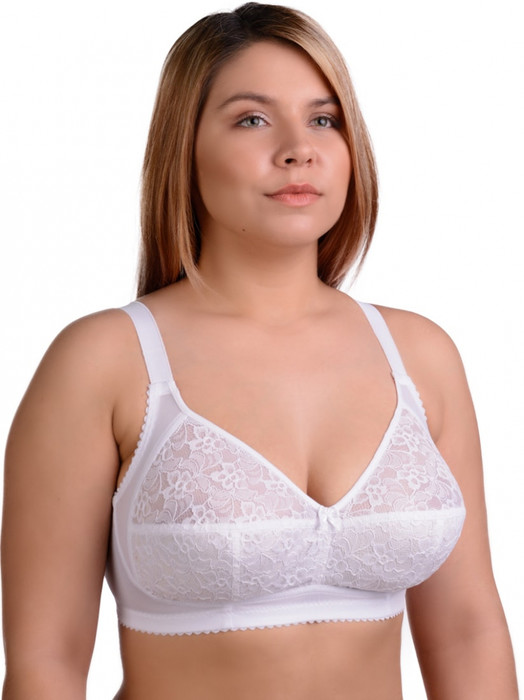 Удобный бюстгальтер на каждый день с кружевной мягкой чашкой на хлопковой подкладке, без каркасов. Белый, черный, бежевый, кофе, пурпур.ясень, т.синий, т.виноград