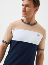 Футболка мужская с круглым вырезом горловины и декоративной планкой с пуговицами, с коротким втачным рукавом. Модель дополнена имиджевой фурнитурой, что делает образ стильным и завершенным.