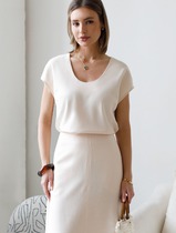 Джемпер умеренного объема из хлопкового трикотажного полотна -рибана. Втачной короткий рукав. Округлая горловина с окантовкой.