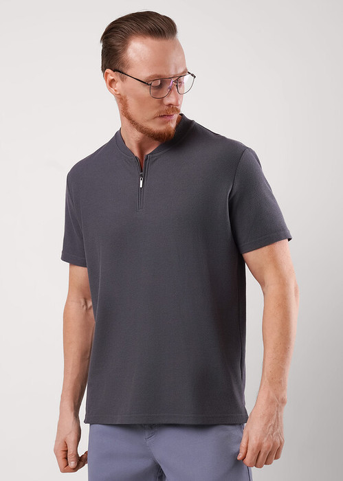 Футболка поло из фактурного полотна с содержанием хлопка, с манжетами. Функциональная планка на молнии. Модель дополнена нашивкой на спинке. Отличное решение для похода на работу и создания образа в стиле casual.