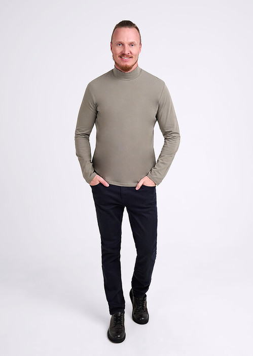 Джемпер прямого силуэта, длинный рукав, горловина на стойке. Изделие выполнено из натурального полотна с добавлением эластана для удобства ношения.