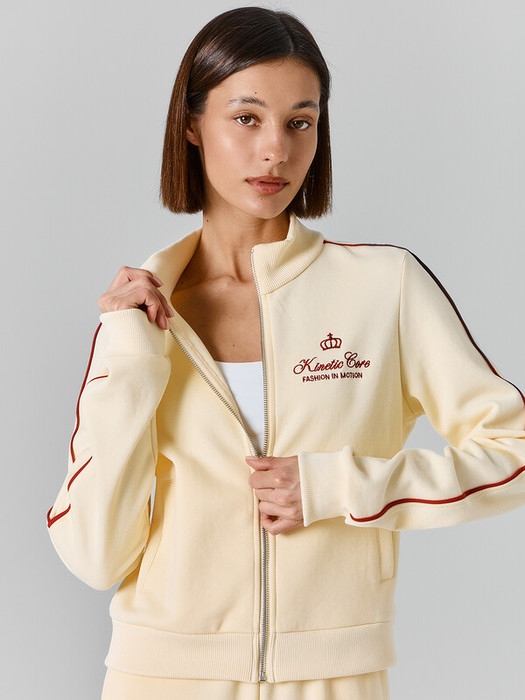 По полечу и сгибу рукава встрочен кант из кулирки. Горловина обработана воротником-стойкой из рибаны. Рукава длинные, втачные, по низу манжеты из рибаны. По центру застежка на метл. молнию. (TwoWay StandartMetal no5, 5,9mm). По переду карманы врамку.  Навесной ярлык premium base по заданию.