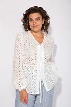 Блуза для офиса – это не обязательно строгость! В летний период приходится пожертвовать этим ради комфорта. Представленная блуза – прекрасный компромисс. Накладные карманы и кокетка с отделкой лаконично уравновешены прямым кроем, застёжкой-поло и круглым вырезом горловины. А свойства льна подарят вам желанный комфорт.