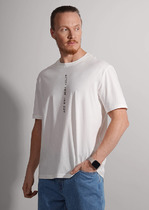 Футболка с круглой горловиной из хлопкового фактурного полотна флам в абстрактную набивку. Изделие дополнено имиджевым принтом. Отлично подойдет для прогулок и встреч с друзьями.