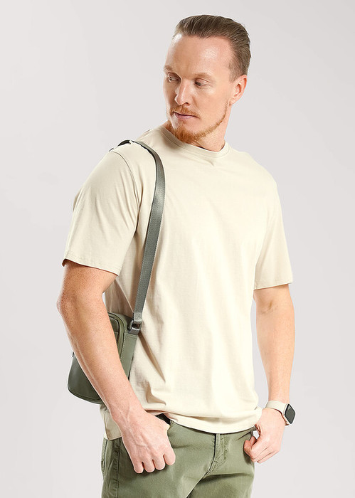 Базовая мужская футболка на каждый день с круглым вырезом и коротким рукавом. Хорошо смотрится в сочетании с любой одеждой. Модель выполнена из 100% хлопка. Модель исполнена в актуальных цветах и отлично подойдет для повседневного ношения.