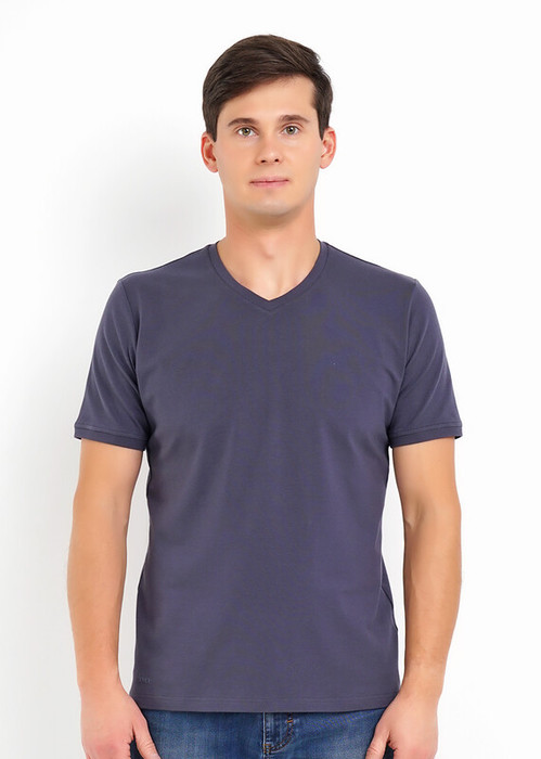 Базовая однотонная футболка стандартного объема с V вырезом горловины, втачным рукавом из хлопкового полотна с добавлением эластана. Является неотъемлемой частью мужского гардероба.