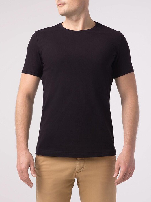 Фуфайка мужская из однотонного трикотажного полотна с коротким рукавом. Горловина круглая обработана обтачкой. Низ рукава обработан манжетами. Обтачка и манжеты изделия из контрастного отделочного полотна.