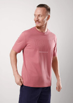 Фуфайка мужская из однотонного трикотажного полотна с коротким рукавом. Горловина круглая обработана обтачкой. Низ рукава обработан манжетами. Обтачка и манжеты изделия из контрастного отделочного полотна.