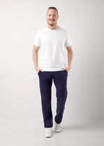 Брюки с отрезным поясом из кашкорсе, двумя карманами в боковых швах и одним накладным карманом сзади.