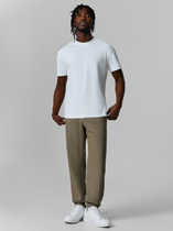 Брюки с отрезным поясом из кашкорсе, двумя карманами в боковых швах и одним накладным карманом сзади.