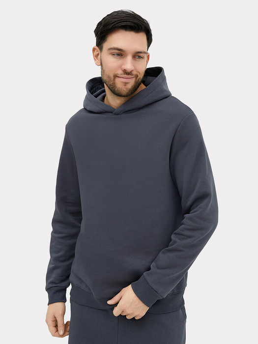 Мужское худи прямого силуэта, слегка посаженное на пояс. Выполнено из трикотажного футера с теплым подчесом. Горловина круглая, с уютным капюшоном, который спереди идет внахлест. Рукава длинные, на манжетах. Есть вместительный карман-кенгуру. Слегка спущенная линия плеча и немного углубленная пройма дарят свободу движений. Отличное худи для стильных образов!