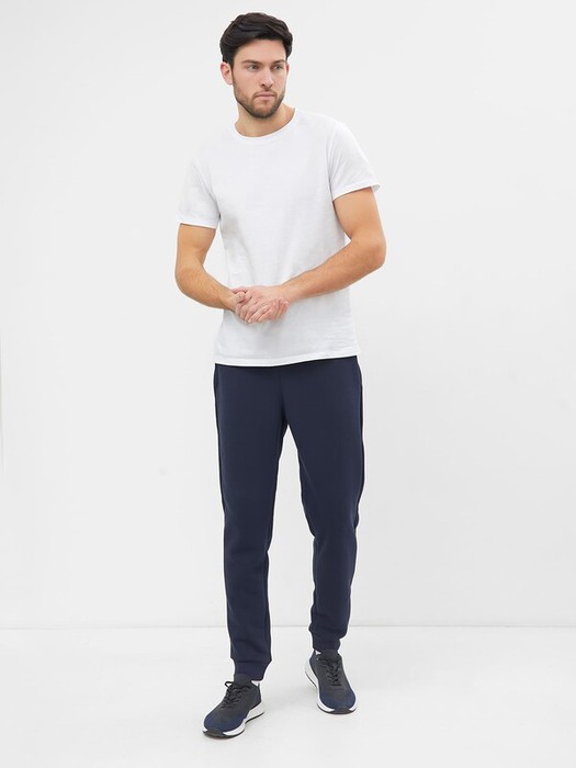 Стильные брюки из трикотажного футера с теплым подчесом. Силуэт зауженный, штанины с манжетами. Есть удобные боковые карманы. В поясе – эластичная тесьма и шнурок-затяжка. Просто, комфортно, актуально!