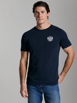 Футболка прямая свободная. Горловина округлой формы обработана обтачкой из рибаны. Шов втачивания обтачки по спинке закрыт бейкой из основного полотна. Линия плеча слегка спущена. Рукава втачные, корткие. Нижние срезы футболки и рукавов обработаны швом вподгибку на 2х шовной плоскошовной машине.