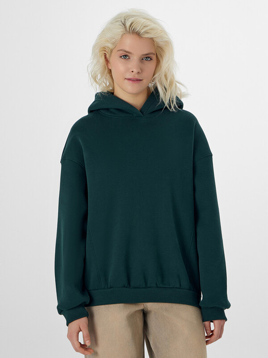 Худи дополнено капюшоном на подкладке и округлой горловиной. Продуманный крой со смещенными вперед швами улучшает посадку, а эластичные манжеты и пояс из рибаны мягко фиксируют форму.