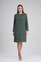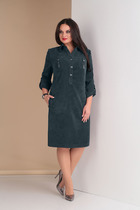 Прилегающее женское платье длиной ниже колена. Выполнено из трикотажной рибаны – в рубчик. Вырез круглый, с чуть удлиненным воротником. Рукава узкие, слегка удлиненные. От линии бедер платье расширяется и завершается асимметричным нижним краем. Красиво!