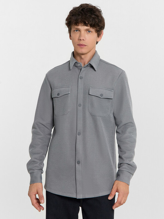Мужская рубашка из трикотажного интерлока в стиле жакета — это удобная и стильная вещь, идеально подходящая для повседневной носки. Свободный силуэт придает образу расслабленность и не стесняет движения, а плотный и мягкий материал обеспечивает комфорт и практичность. Горловина оформлена рубашечным воротником, который добавляет строгости и завершенности. Застежка на кнопках по центру делает модель современной и удобной в использовании. Спереди расположены накладные карманы, создающие акцент и усиливающие практичность. Спущенная линия плеча подчеркивает стильную неформальность кроя, а длинные рукава с манжетами на кнопках вносят легкий элемент делового стиля. Нижний край изделия аккуратно обработан швом вподгибку, что добавляет аккуратности. Такое сочетание деталей делает рубашку универсальной — ее можно носить как самостоятельно, так и поверх футболки или водолазки.