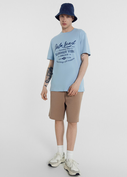 Стильные мужские шорты из трикотажного интерлока. Строгий прямой силуэт, эластичная тесьма в поясе, регулировочный шнур-завязка, удобные боковые карманы – ничего лишнего!