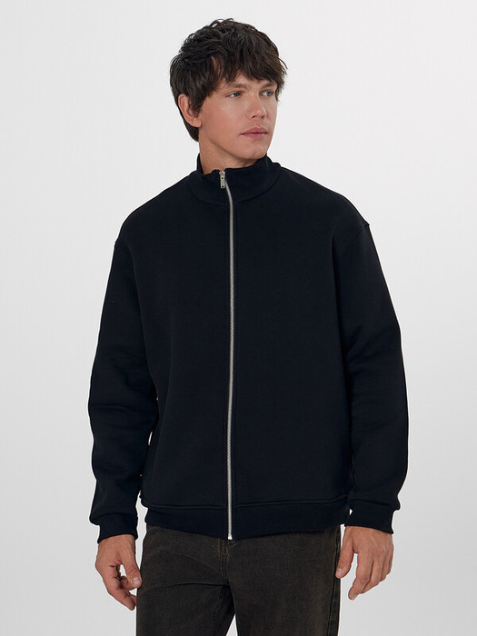 Мужская толстовка прямого силуэта из трикотажного футера с подчесом — практичный и универсальный выбор для прохладных дней. Материал обладает мягкостью и умеренной плотностью, отлично удерживает тепло и приятно ощущается на теле. Округлая горловина с воротником из рибаны аккуратно оформлена и надежно фиксируется, сохраняя форму при носке. Спущенная линия плеча и длинные рукава с рибаной на манжетах обеспечивают комфорт и расслабленный силуэт, подходящий для любого типа фигуры. Центральная застежка на тесьму-молнию позволяет легко надевать и снимать изделие, а также добавляет практичности и динамичного настроения. Пояс из рибаны по низу завершает образ и фиксирует посадку, не давая ткани растягиваться. Толстовка легко комбинируется с джинсами, спортивными брюками или шортами, отлично подходит для города, загородных поездок или активного отдыха.