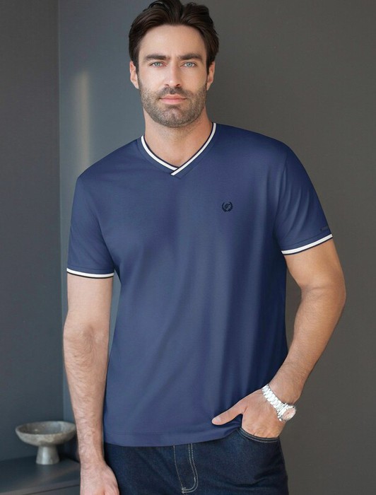 22.03 Vilatte Футболка с V-вырезом из премиального хлопка с эластаном U49.056 с