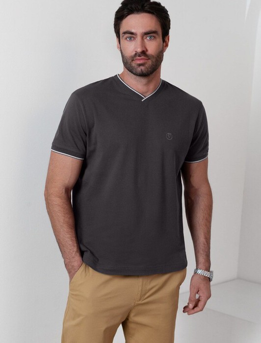 Совместные покупки Курган Мужская одежда Футболки — 27.03 Vilatte Футболка с V-вырезом из премиального хлопка с эластаном U49.056 т