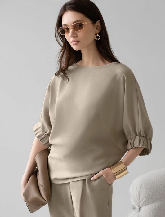 Свободная блузка темно-синего цвета выполнена из плотного лиоцелла. Лиоцелл это более дорогой и экологичный вариант вискозы, очень прочный и шелковистый. Современная интерпретация кроя «летучая мышь» дополнена акцентными эластичными манжетами. Эта блузка идеальна для любого типа фигуры, в том числе и на королевские размеры. Этот крой создан для того, чтобы мягко скрыть лишние объемы. Эта повседневная блузка с вырезом лодочка создана для легкого и утонченного стиля. Мягкие линии кроя создают невероятно эффектный образ, который подчеркивает естественную красоту, не стесняя движений, а свободный фасон дарит ощущение абсолютного комфорта и уверенности. Блузка красиво драпируется при движении, создавая летящий, воздушный эффект.