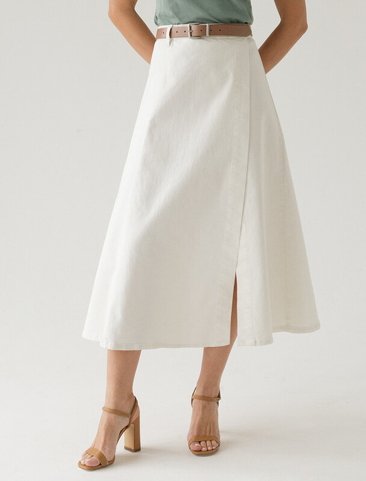 Юбка А-силуэта с застежкой на запАх выполнена из эластичного денима. Модель свободного кроя с посадкой на талии. Застежка на две пуговицы. Мягкий эластичный деним обеспечит комфорт и свободу движений. Хорошо сочетается с любым верхом и разной обувью.