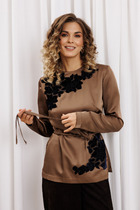 Элегантная укороченная блузка темно-синего цвета выполнена из плотного лиоцелла. Лиоцелл это более дорогой и экологичный вариант вискозы, очень прочный и шелковистый. Ткань отличается от регулярной коллекции из лиоцелла - она содержит еще больше лиоцелла (92%), благодаря чему имеет более нежную шелковистую фактуру. Модель дополнена объемными рукавами длиной 7/8, создающими модный акцент. Укороченная передняя часть блузки выгодно подчеркивает линию талии, а удлиненная спинка обеспечивает комфорт. Этот асимметричный фасон придает образу динамичности, а V вырез визуально вытягивает силуэт. Свободный крой романтиной блузки не сковывает движений и отлично садится по фигуре даже на большие размеры, скрывая возможные недостатки. Эта легкая блузка с застежкой на пуговицы идеальный выборо для комфорта и стиля в теплое время года, она идеально адаптируется под любой повод.