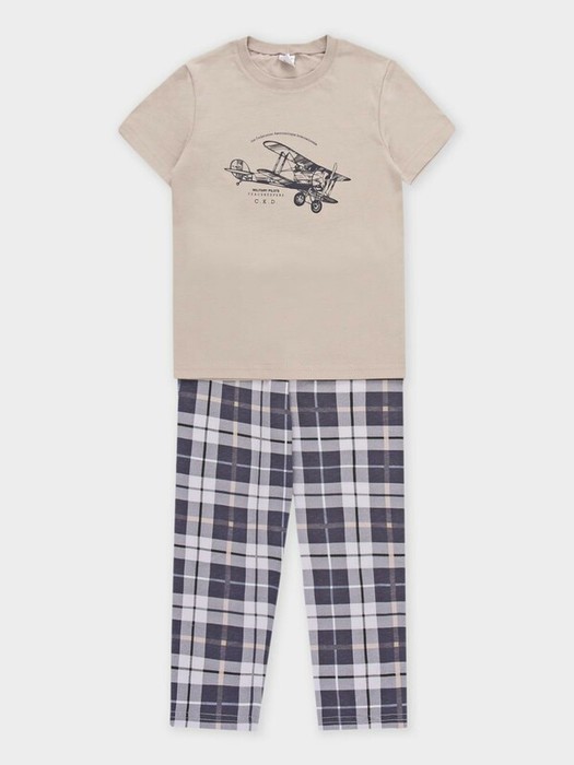 22.04 Crockid пижама для мал К 1599/темно-бежевый,клетка таттерсолл