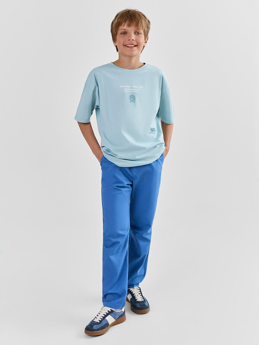 Брюки из текстильного полотна. Силуэт прямой, немного зауженный к низу. Пояс из трикотажного полотна рибана, с регулировочным шнуром. Есть удобные карманы-хулиганы. Имитация гульфика. Все отделочные строчки выполнены толстыми нитками. Стильные брючки!