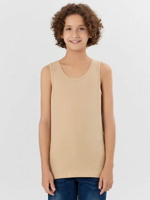 Комфортная хлопковая майка из трикотажной кулирки. Силуэт полуприлегающий, длина до середины бедер. Горловина и пройма расширены и углублены, а также обработаны мягкой бейкой. Именно такую майку вы искали для своего мальчика!