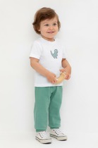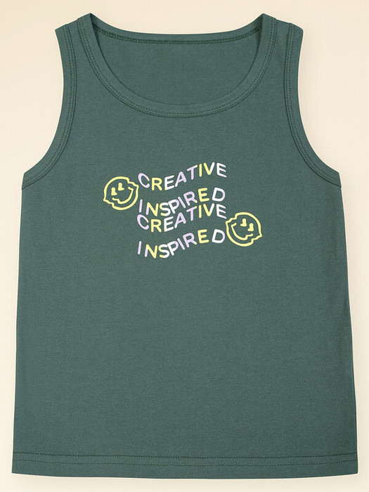 Выбирая бельё для своего ребёнка, любая мама заботится о его качестве и о том, чтобы ребёнку в нём было комфортно. Наша майка из 100% хлопка для мальчика — именно то, что вам нужно! Благодаря натуральному составу ткани модель приятна на ощупь, прекрасно пропускает воздух — кожа ребёнка дышит. Изделие правильного кроя — комфортно садится по фигуре, ребёнку удобно на протяжении всего дня. Такую майку можно носить под джемпер или свитер в качестве нательного белья. Горловина и проймы обработаны в тон — они не растягиваются, сохраняют великолепный внешний вид надолго. Изделие выполнено в трендовом цвете шалфея. Темно-зеленый цвет красивый и практичный. По переду майку украшает забавный принт с позитивным настроением. Перевод: "Вдохновленный творчеством". Принт эластичный и прочный — прекрасно переносит частые стирки. Эта модель универсальна, подходит для повседневной носки, летнего отдыха и как одежда для дома. Станет замечательным подарком, который способен вызвать искреннюю радость у каждого ребёнка, оставив н