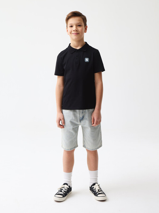 Трикотажное поло с короткими рукавами. Мягкий фактурный трикотаж из 100% хлопка. Классический прямой крой, отложной воротник с декоративными контрастными полосами, планка на двух пуговицах. В верхней левой части груди принт буквы S. На спине контрастный принт TRUTH (с англ. «истина») и NO TIME FOR FAKE PEOPLE (с англ. «Не трать время и энергию на бесполезных людей»). Размерный ряд 128 – 176 см.
