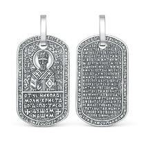 Подвеска религиозная из чернёного серебра - Николай Чудотворец, молитва Николаю