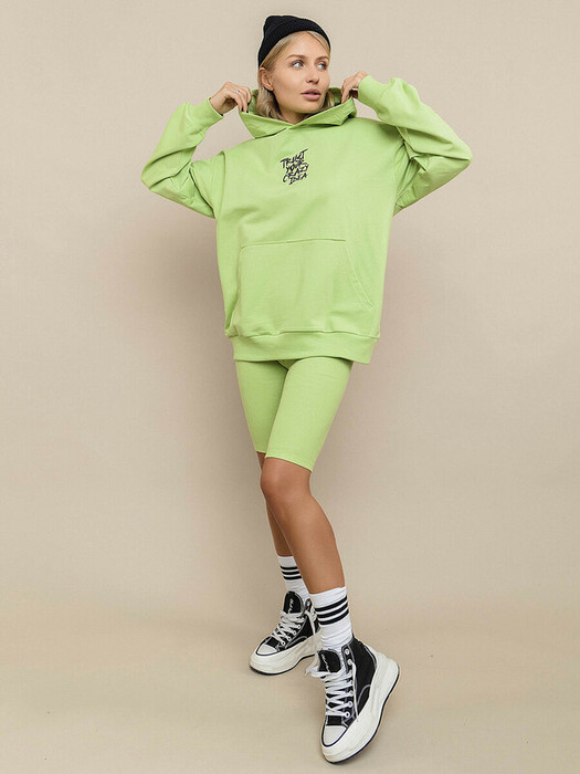 Худи унисекс салатовый из футера 2х нитки с капюшоном. Стильный худи из натурального хлопка с мягкими эластичными манжетами и карманом-кенгуру. Спущенная линия рукава, крой оверсайз, лаконичный граффити-рисунок на груди.Характеристики:Ткань: Футер 2х нитка 95% хлопок 5% эластанПроизводитель: batik