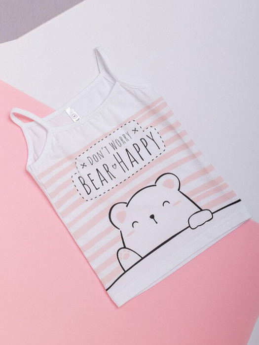Майка для девочки белая из супрема пенье с рисунком на тонких бретелях. Базовая майка для девочек сшита из органического хлопка. Это воздухопроницаемый, износоустойчивый и приятный к телу материал, за которым легко ухаживать.Характеристики:Ткань: Супрем пенье 92% хлопок 8% эластанПроизводитель: batik