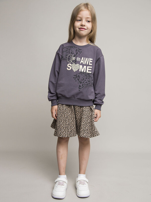 Стильный серый свитшот для девочки с модным принтом. Уютный и трендовый свитшот из мягкого футера станет любимой вещью в гардеробе любой девочки. Классический серый цвет в сочетании с ярким принтом на груди создает стильный casual-образ.
