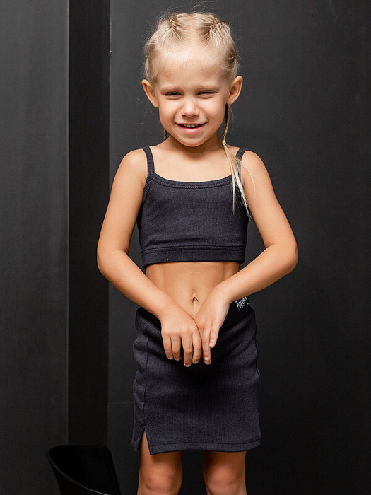 Топ (майка) для девочки в графитовой расцветке на тонких бретелях однотонный. Изящная модель выполнена из качественного трикотажа - ткани кашкорсе. Ткань легкая и плотная, приятно ощущается на теле.