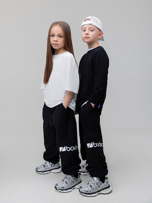Совместные покупки Курган Детская одежда Брюки — 24.03 Bodo Брюки с печатью на левой половине 6-626MU черный (белый)