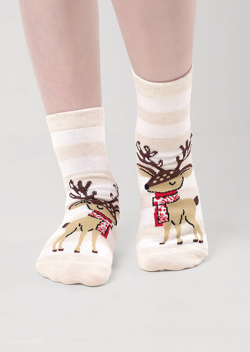 Носки детские с рисунком оленя в новогоднем шарфике
