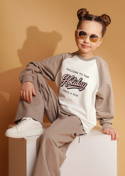 24.03 Clever Свитшот для девочки CLE 867401/15ан_п св.коричневый/кофейный