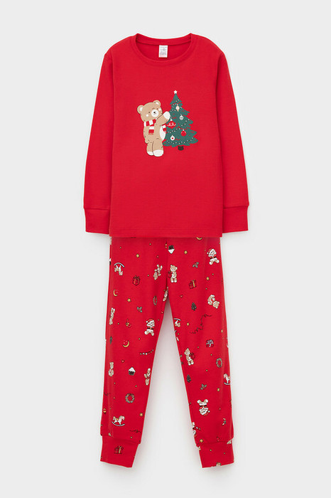 24.03 Crockid пижама д/дет яс К 1541/насыщенно-красный,мишки на празднике