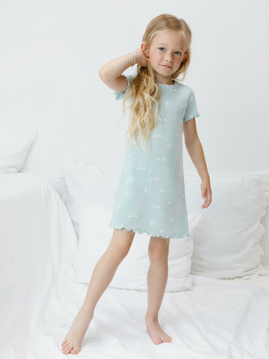 24.03 Crockid сорочка ночная для дев К 1180/голубой опал,мини зайчики