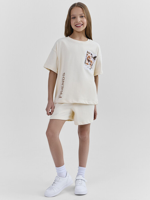 Стильный комплект для девочек. Выполнен из трикотажного футера. Состоит из футболки и шортов. Футболка свободного силуэта длиной до середины бедра, с короткими рукавами и круглой горловиной. Шорты длиной немного выше колен, с эластичной резиной в поясе и регулировочным шнуром. Прекрасный выбор!