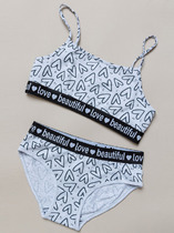 Комплект состоит из топа и трусов.                                                                                      Топ с боковыми швами. Горловина круглой формы. Спинка фигурная, как в спортивном топе. Подкладка по внутренней части переда из кулирного полотна SJ-6 (SJ-009.01.170),95% хлопок; 5% эластан , 180 см, 170 гр/м?. Горловина и пройма окантованы бейкой из основного полотна. По нижнему срезу топа настрочена эластичная тесьма (тесьма жаккард JT1-25), ширина - 25 мм.